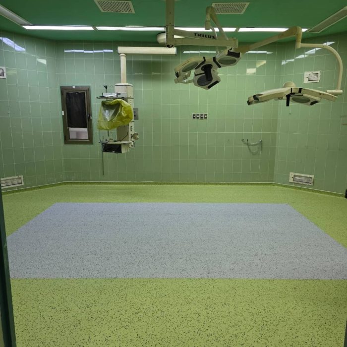 – کفپوش اپوکسی: یکپارچه، بدون درز، مقاوم در برابر مواد شیمیایی و مناسب برای اتاقهای جراحی.